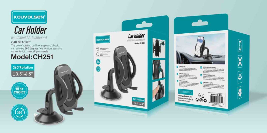 A KOUVOLSEN CH251 egy univerzális, stabil és könnyen kezelhető autós telefontartó, amelyet úgy terveztek, hogy minden vezetési helyzetben biztonságos és kényelmes telefonhasználatot biztosítson. A 360°‑os forgathatóság, a masszív rögzítés és a széles kompatibilitás miatt ideális választás mindennapi használatra.