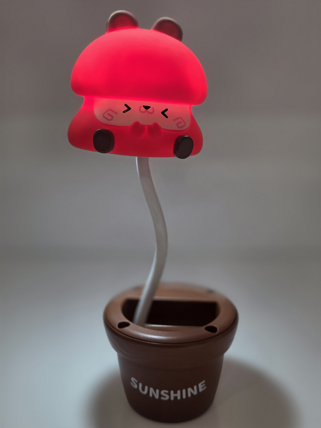 Ez a bájos, karakteres dekorlámpa tökéletes választás azoknak, akik szeretik a kedves, játékos kiegészítőket. A lámpa egy cserépben ülő figurát formáz, amely rugalmas, hajtogatható száron helyezkedik el — így könnyedén beállítható a kívánt irányba. A kompakt méret és a puha fények miatt ideális éjjeli fénynek, gyerekszobába, íróasztalra vagy hangulatvilágításnak.