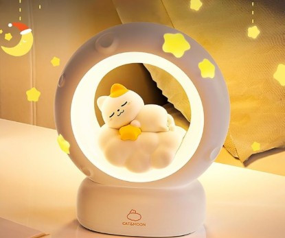 A „Sleeping Kitten” hangulatlámpa egy bájos, megnyugtató fényű dekorlámpa, amely egy alvó kiscicát ábrázol puha felhőn pihenve, kör alakú keretben. A lámpa meleg, lágy fényt bocsát ki, amely ideális esti relaxációhoz, altatáshoz vagy éjjeli fényként. A cica békés testtartása és a körülötte megjelenő csillag‑ és „Z” motívumok azonnal nyugalmat árasztanak.