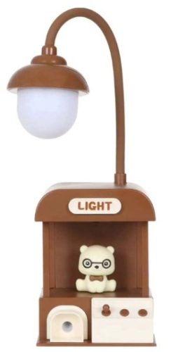 Ez a bájos, játékos stílusú asztali lámpa azonnal mosolyt csal bárki arcára. A kis „bódéban” ülő maci figura és a fölé hajló lámpakar együtt egy kedves, mesés hangulatot teremt. Tökéletes választás gyerekeknek, tiniknek, vagy bárkinek, aki szereti a kreatív, dekoratív kiegészítőket.