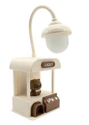 Ez a bájos, játékos stílusú asztali lámpa azonnal mosolyt csal bárki arcára. A kis „bódéban” ülő maci figura és a fölé hajló lámpakar együtt egy kedves, mesés hangulatot teremt. Tökéletes választás gyerekeknek, tiniknek, vagy bárkinek, aki szereti a kreatív, dekoratív kiegészítőket.