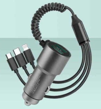 Autós Gyorstöltő 3‑in‑1 Kábellel (Lightning + USB‑C + Micro USB)-szürke