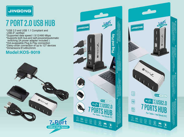 JINGONG KOS-9019 – 7 portos USB 2.0 HUB külső táppal